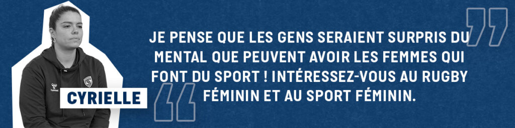 Joueuse du MHR Féminin depuis 2013 et internationale française depuis 2018, Cyrielle Banet porte un regard lucide et engagé sur sa discipline. Elle reconnaît que le rugby féminin ne disposera sans doute jamais des mêmes moyens que le rugby masculin, mais elle insiste sur sa richesse humaine et émotionnelle. Les valeurs comme l’esprit d’équipe, la solidarité ou encore le dépassement de soi qu’il véhicule façonnent les joueuses bien au-delà du terrain. Cyrielle évoque également le rôle déterminant de Jennifer Troncy, d’abord coéquipière puis coach, qu’elle considère comme un modèle de dévouement et d’engagement pour son club de cœur. Concernant la place des femmes dans le rugby, elle affirme qu’elle n’est en rien un frein, mais au contraire une force. Les émotions vécues, le lien avec le public et la cohésion d’équipe démontrent que le rugby féminin est une discipline à part entière, qui mérite d’être regardée pour ce qu’elle est.