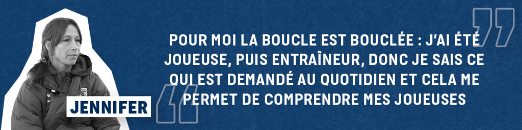 Figure incontournable du MHR Féminin, Jennifer Troncy incarne la continuité entre les générations. Ancienne joueuse du club de 2003 à 2021, internationale française et aujourd’hui membre du staff, elle a vécu toutes les évolutions du rugby féminin de l’intérieur. Selon elle, la discipline est désormais comprise et acceptée par tous : la place des femmes dans le rugby ne suscite plus de réticence. Elle observe une évolution positive du regard porté sur la discipline : le rugby féminin est désormais mieux compris et accepté. Jennifer souligne l’importance des modèles féminins dans ce sport, capables d’inspirer les jeunes générations et de légitimer leur place. Elle met également en avant l’identité retrouvée du MHR Féminin, portée par un groupe de joueuses engagées, travailleuses et ambitieuses. La transmission est essentielle, notamment à travers des figures comme Cyrielle Banet, jouent un rôle clé, en faisant le lien entre la génération victorieuse du passé et celle d’aujourd’hui, transmettant une culture et un état d’esprit « à la montpelliéraine ».